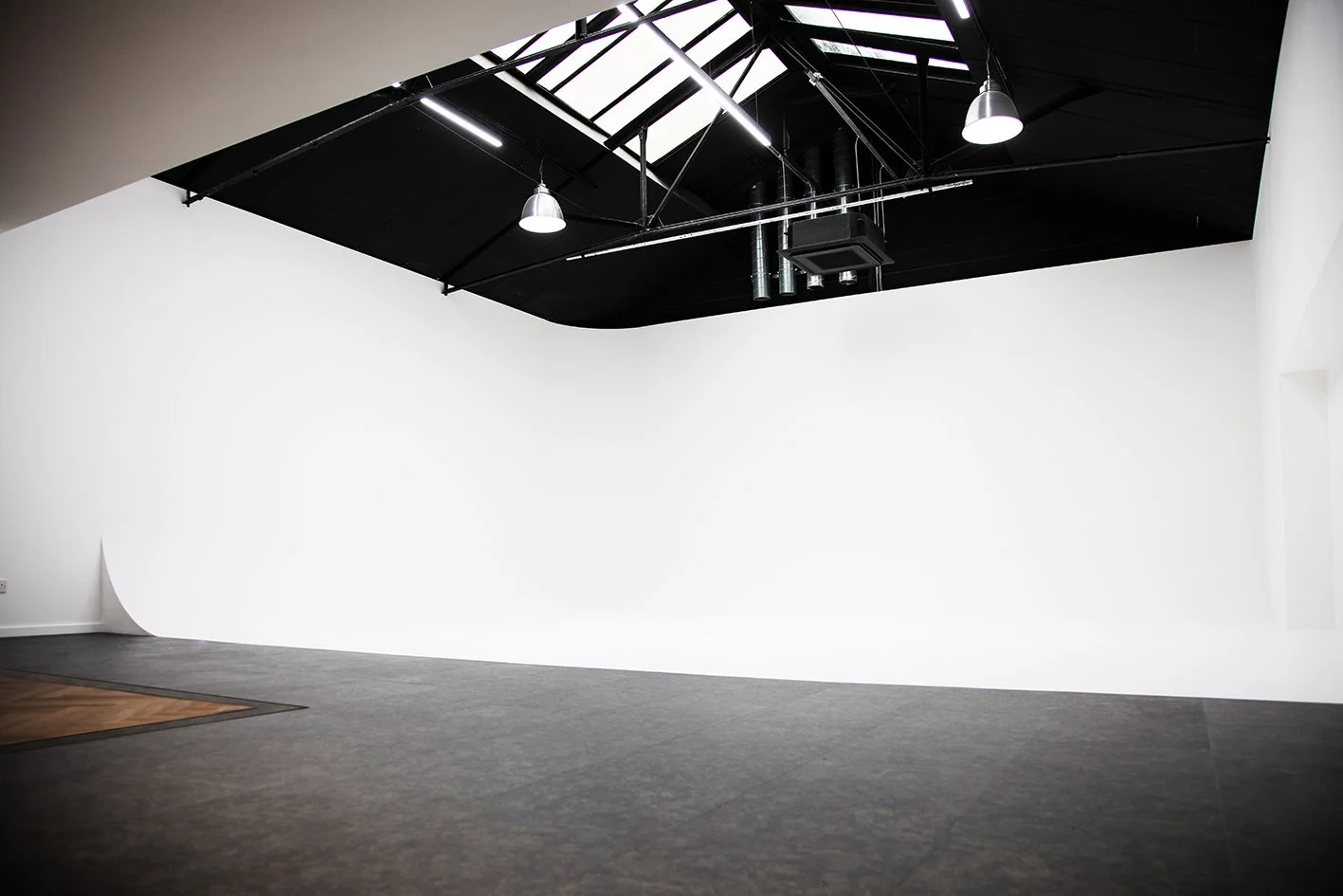 1000 square feet of private useable area, featuring a luxury, heated infinity wall with a 90cm radius cove. Underfloor heating and air conditioning throughout, beautiful TV lounge/meeting space, skylights with complete blackout blinds, mood lighting, shared use of the kitchenette and WC, easy access from the street and double doors for bulky loads. The space is generously insulated and near soundproof.